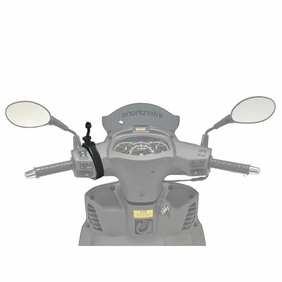 Mounting system for use on non-tubular handlebars. Thanks to a precise tightening system with a foolproof guide and ultra-fine regulation of the belt locking device, this holder offers the highest degree of stability on the non-tubular handlebars found on scooters and motorcycles. The rubber strap provided with the system is applied along the inside of a belt equipped with ultra-fine adjustment capability and protects the handlebar from pulling and rubbing. The strap is cut to fit the circumference of the handlebar before application. The sturdy eyelet on the end of the belt with ultra-fine adjustment allows the user to pull on the belt gradually until the mounting system reaches its most stable, final position. The system for adjusting the support bracket permits precise regulation of the angle at which the snap-on bayonet clip is pointed and is designed for use with dedicated products in the Interphone line. The SSC system is easily removable for use on other vehicles and is also equipped with a quickrelease lever for rapid removal of the device. Sturdy and well-designed, SSC does not require installation by qualified personnel.
