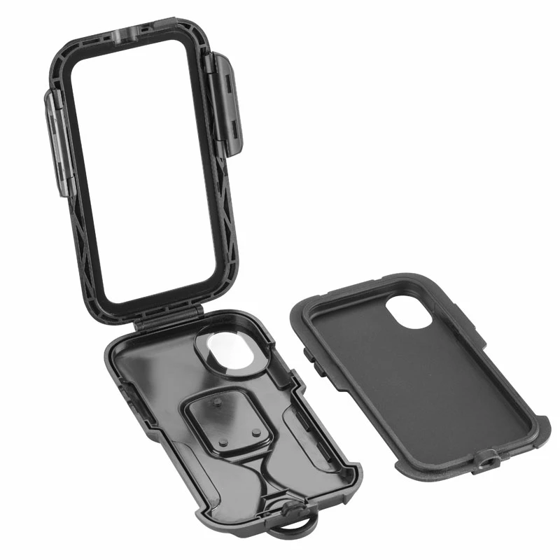 The waterproof holder for iPhone X has a very strong outer case and an internal adapter in shockproof silicone to protect your smartphone when travelling by motorbike.