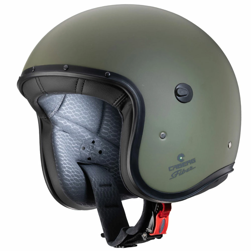 Freeride is the new Caberg jet with a stylish and vintage look and the outer shell made of aramid fiber and fi berglass ( it is also available a shell version made completely of carbon). The small-sized shell dimension, one of the smallest on the market, enabled to reach a weight slightly above 800 gr. so that it can easily fi t under narrow seats. Caberg carefully focused on refi ned materials and key features all made in Italy such as the fi ve rivets on the rim, the steel air intakes on the neck device, leather details, and the goggles holder with serigraphy. Moreover, during winter time or long ride routes, Freeride can be used either with a long clear visor easy to mount included in the helmet box, or with Caberg vintage goggles, available as spare part, for custom bike riders. The lining is completely removable and washable made with breathable fabrics and leather details. Outer shell: aramid fiber and fi berglass Lining: Completely removable and washable lining with transpiring fabrics and leather details. Visor: Long clear visor treated antiscratch Fastening: Micrometric buckle. Sizes: XS53/54; S55/56; M57; L58; XL59 Homologation: Ece 22.05 Weight: 900 +/