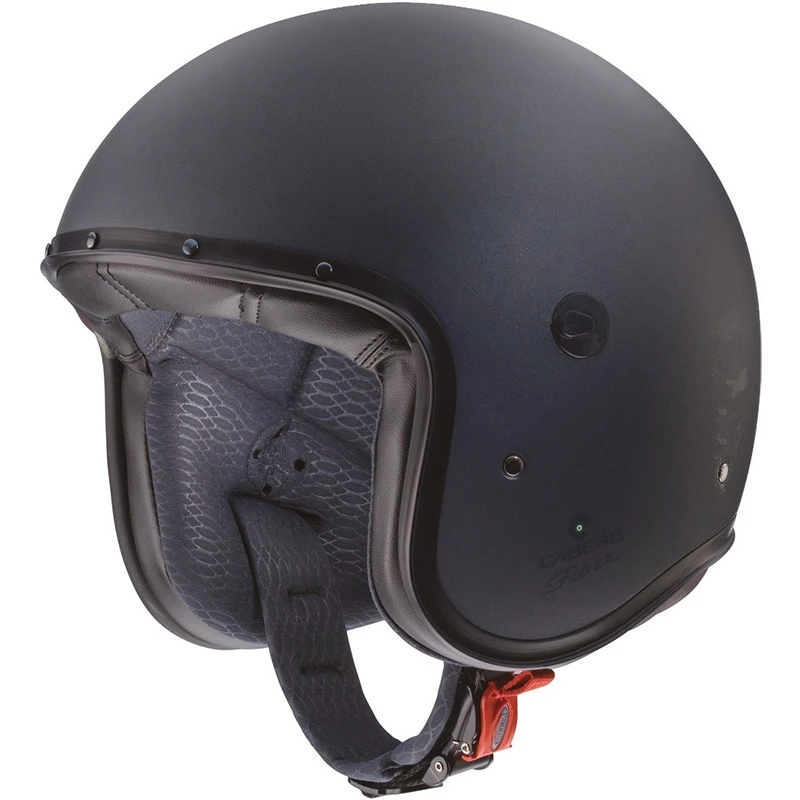 Freeride is the new Caberg jet with a stylish and vintage look and the outer shell made of aramid fiber and fiberglass ( it is also available a shell version made completely of carbon). The small-sized shell dimension, one of the smallest on the market, enabled to reach a weight slightly above 800 gr. so that it can easily fi t under narrow seats. Caberg carefully focused on refi ned materials and key features all made in Italy such as the fi ve rivets on the rim, the steel air intakes on the neck device, leather details, and the goggles holder with serigraphy. Moreover, during winter time or long ride routes, Freeride can be used either with a long clear visor easy to mount included in the helmet box, or with Caberg vintage goggles, available as spare part, for custom bike riders. The lining is completely removable and washable made with breathable fabrics and leather details. Outer shell: aramid fiber and fi berglass Lining: Completely removable and washable lining with transpiring fabrics and leather details. Visor: Long clear visor treated antiscratch Fastening: Micrometric buckle. Sizes: XS53/54; S55/56; M57; L58; XL59 Homologation: Ece 22.05 Weight: 900 +/
