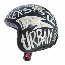 a micrometric buckle for safe and easy adjustments and a metal ring to secure the helmet to the motorcycle.