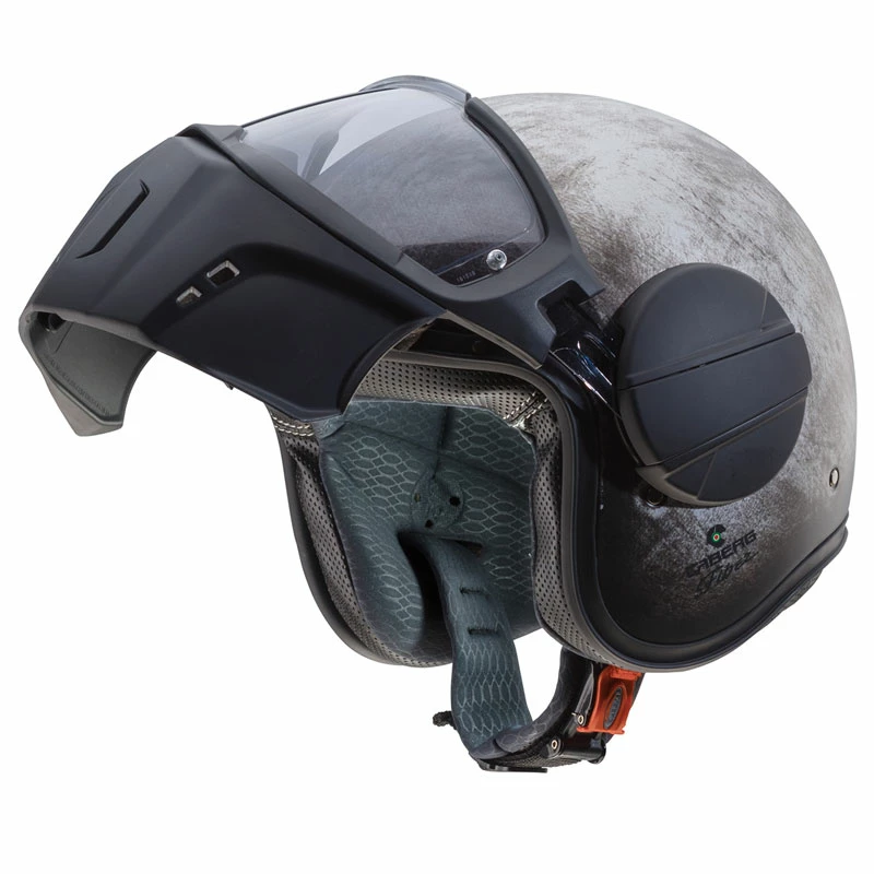 The aggressive look and shapes are combined with great functionality, that is unique on the market. This Jet, in fact, is equipped not only with a particular goggle shape visor that adheres to the face thanks to the foam profile along the inner lower side of the visor, but also with a mask easy to use to protect the face from the cold in the winter months and from swallowing too many gnats in the summer timeβ¦