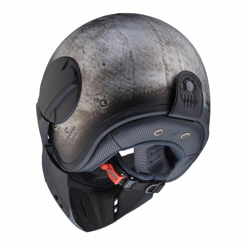 Ghost can be equipped also with the Caberg Bluetooth communication system JUST SPEAK S, thanks to the space below the removable lining to nestle the speakers. To customize your Ghost, besides the standard light smoked visor, there are available, as spares, a mirror visor, dark visor, transparent, and a yellow one. For a perfect adhesion of the mask foam to the face, Caberg offers the possibility to buy the visor foam profile in 3 different thicknesses: 18mm, 21mm, and 25mm.